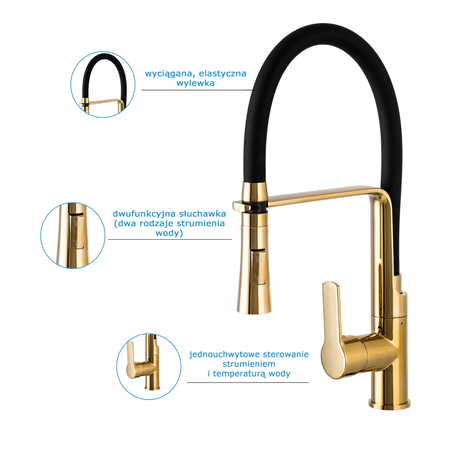 - Wyciągana słuchawka z giętkim wężem