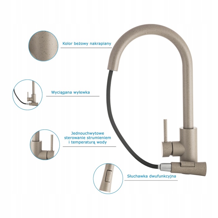 Bateria kuchenna kran PAMELA wyciągana wylewka BEŻOWA