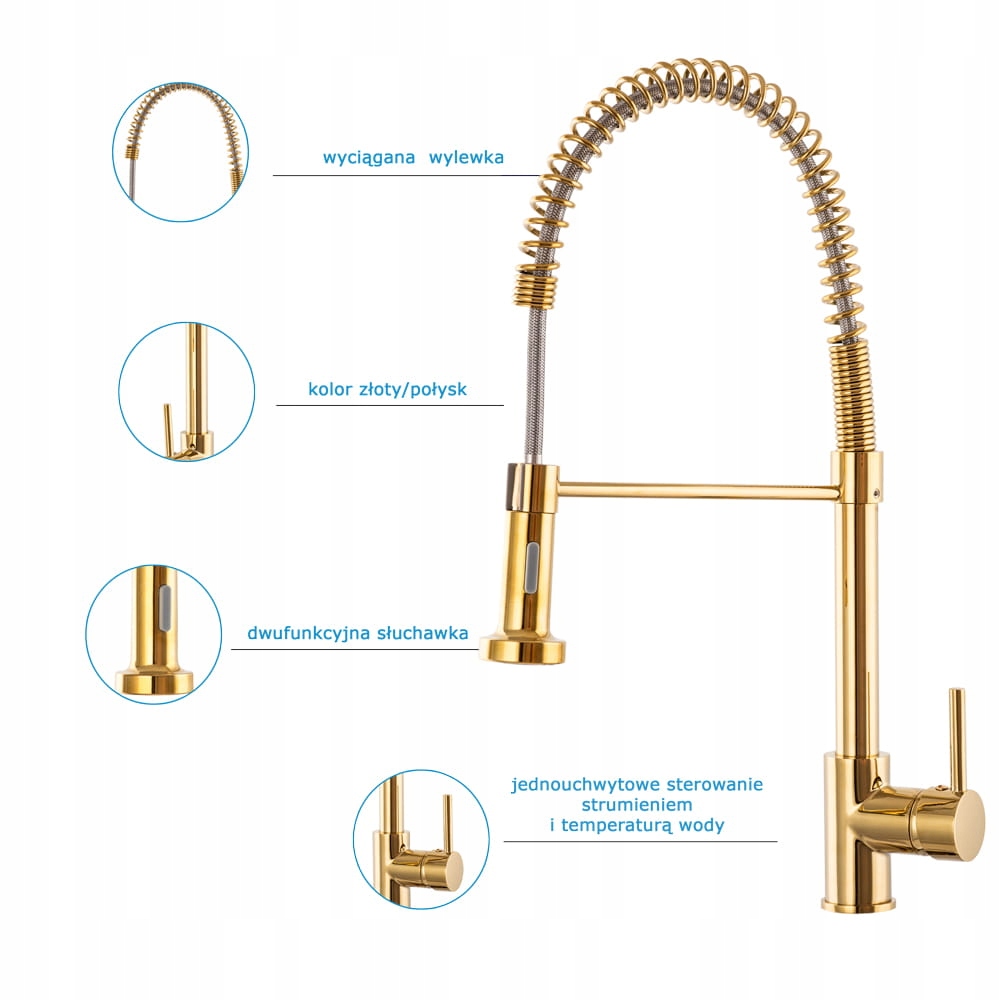 Bateria kuchenna Spiral Gold złota wyciągana wylewka 53 cm MUST HAVE !