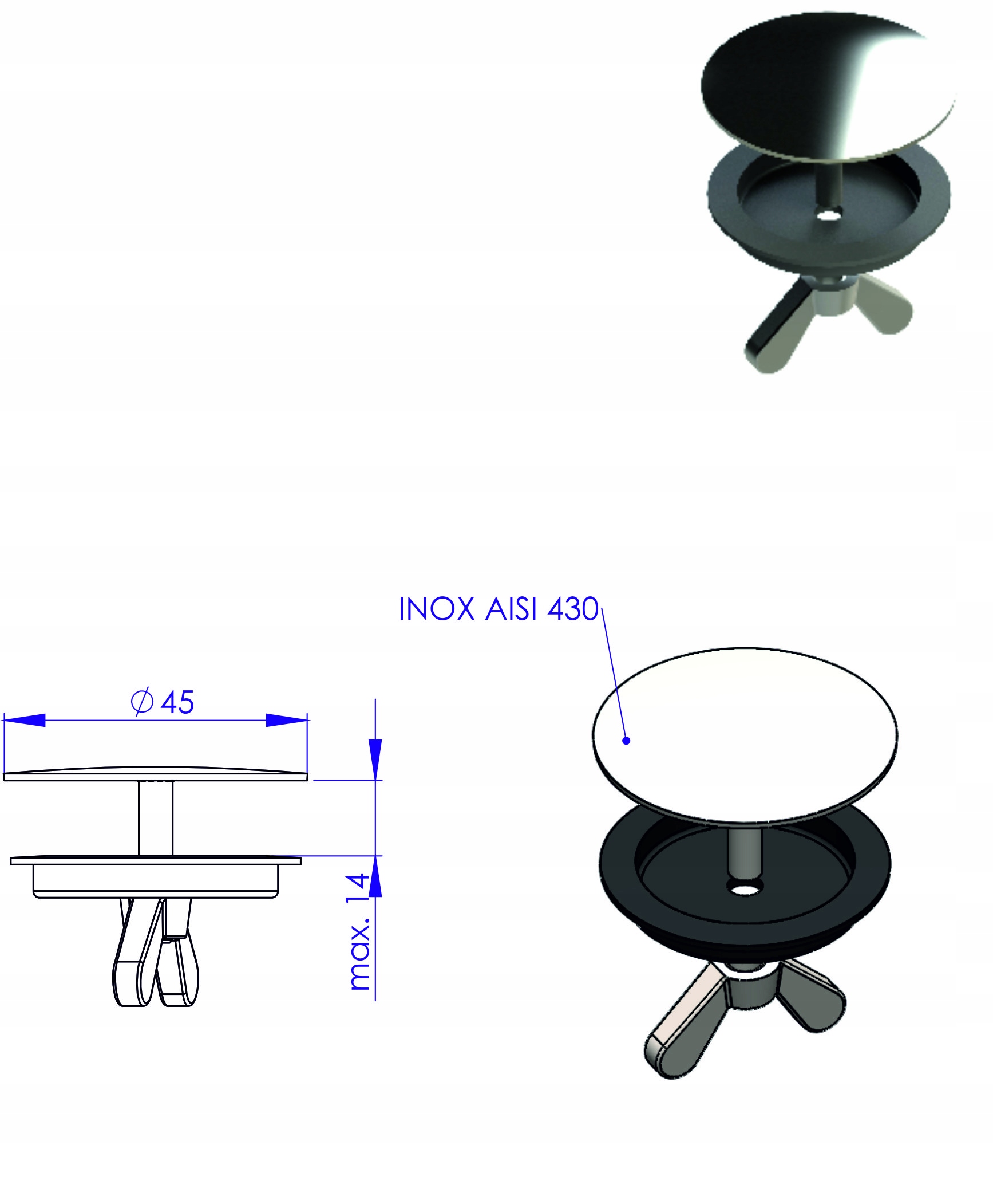 Zaślepka chromowana do umywalek i zlewozmywaków.