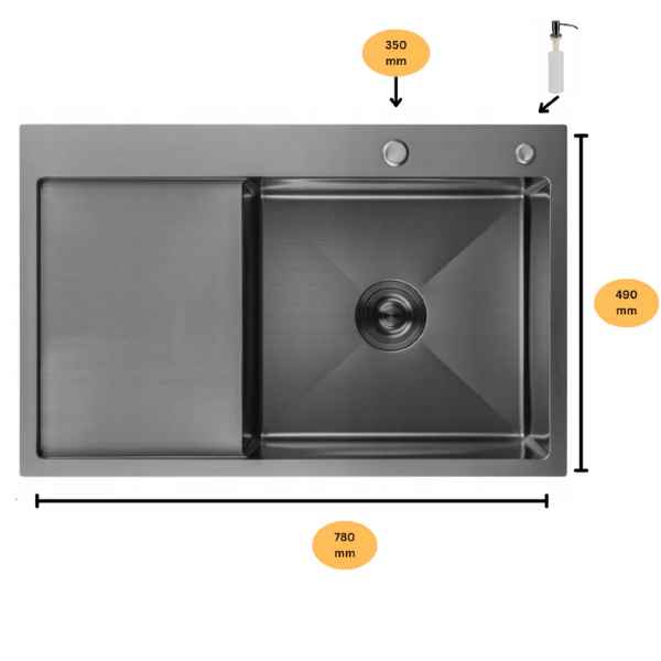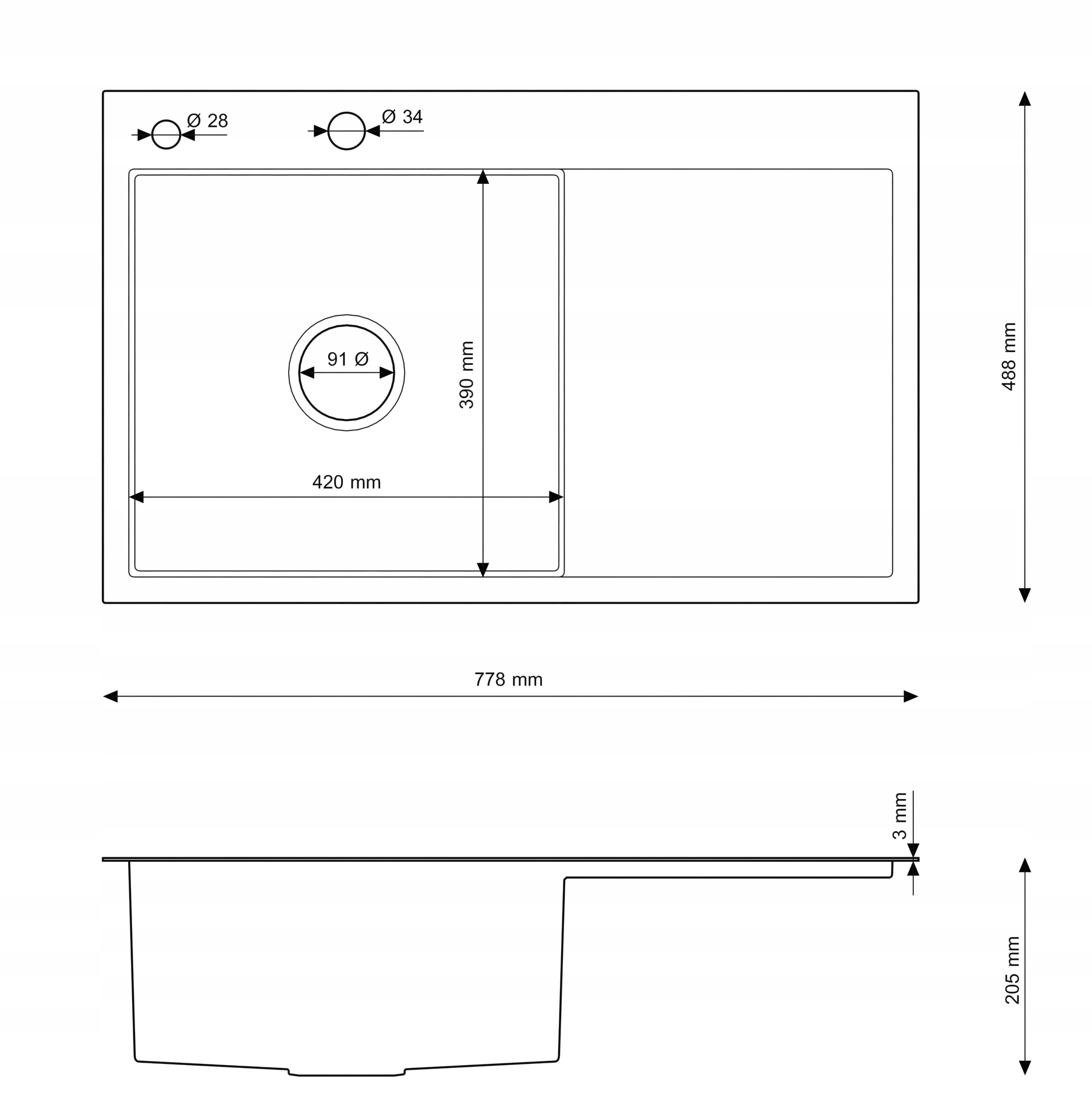 - Wymiar zlewozmywaka: 780 mm x 490 mm x 215 mm