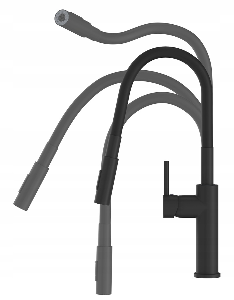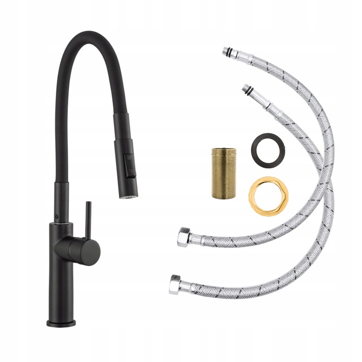 Czarna bateria kuchenna DIANA giętka z wyciąganą wylewką zlewozmywakowa
