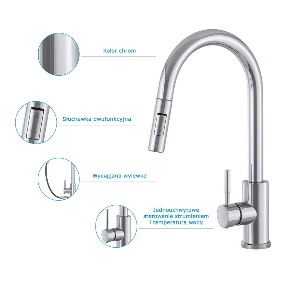 Bateria kuchenna chromowana kran wyciągana wylewka JULIA CHROM