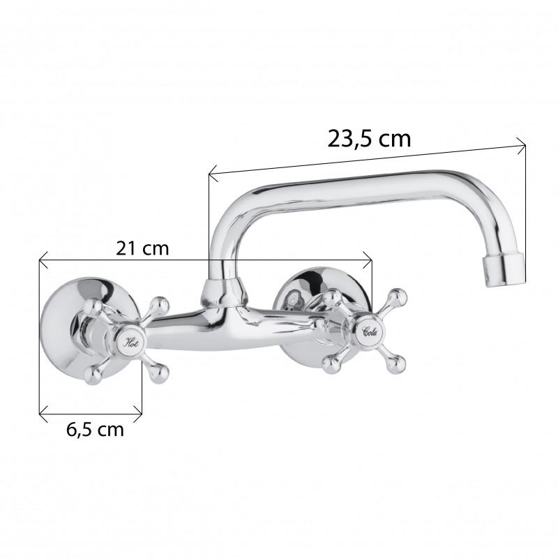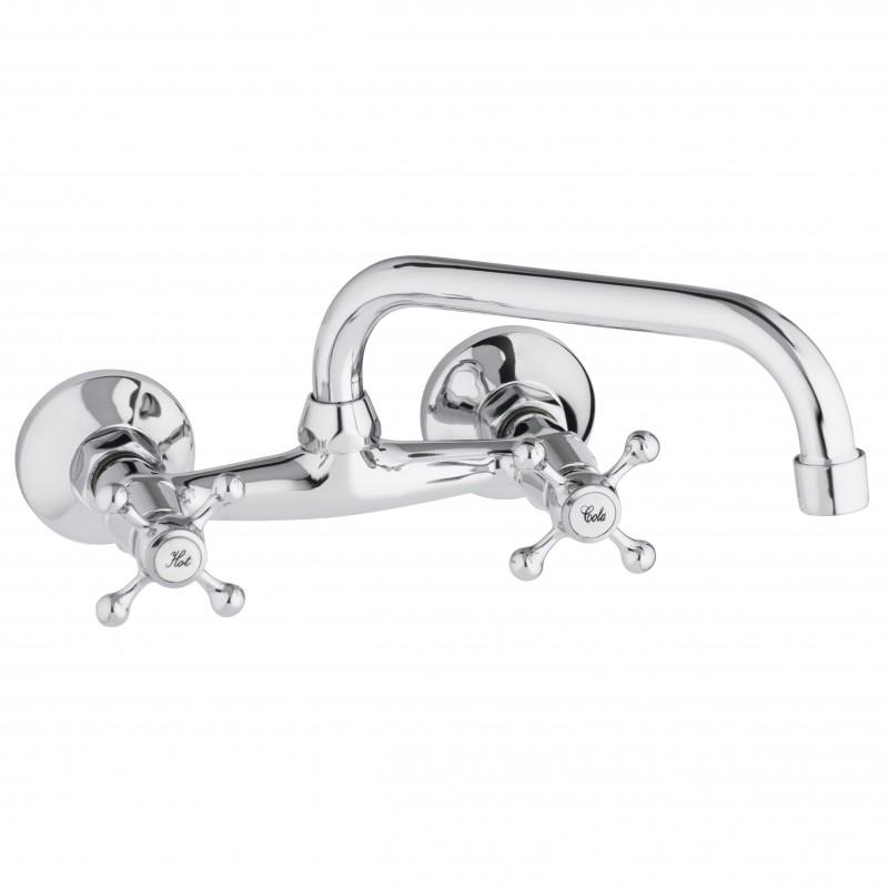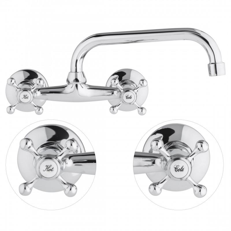 Bateria kuchenna ścienna zlewozmywakowa RETRO kran chrom