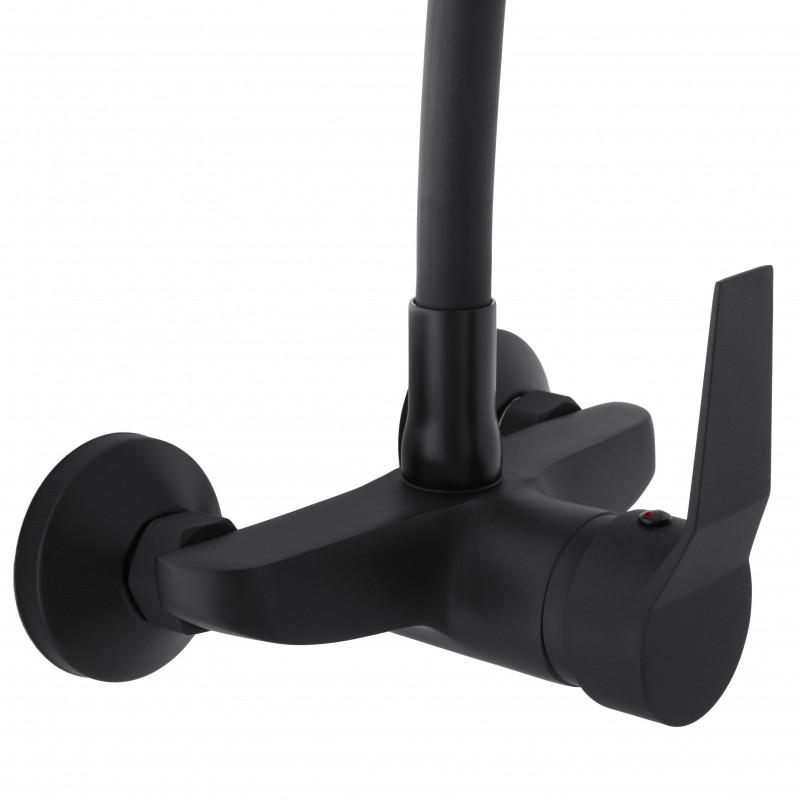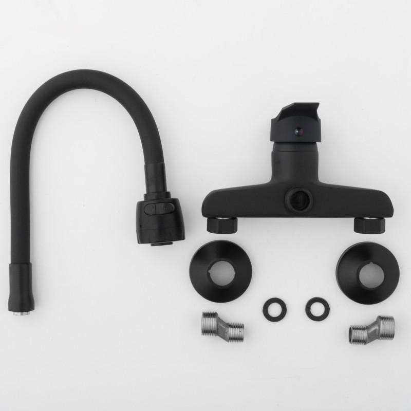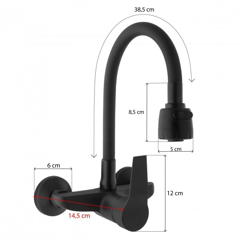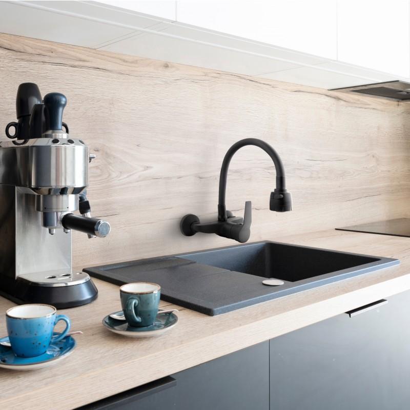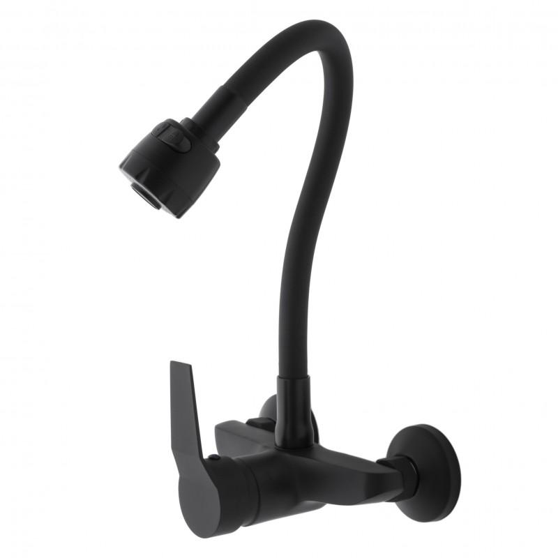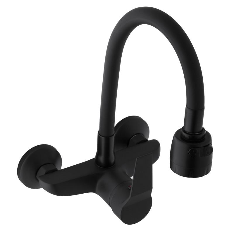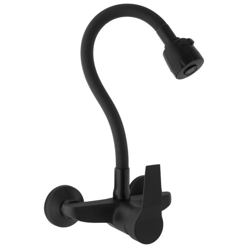 Bateria ścienna kuchenna zlewozmywakowa elastyczna giętka kran Livia czarny mat