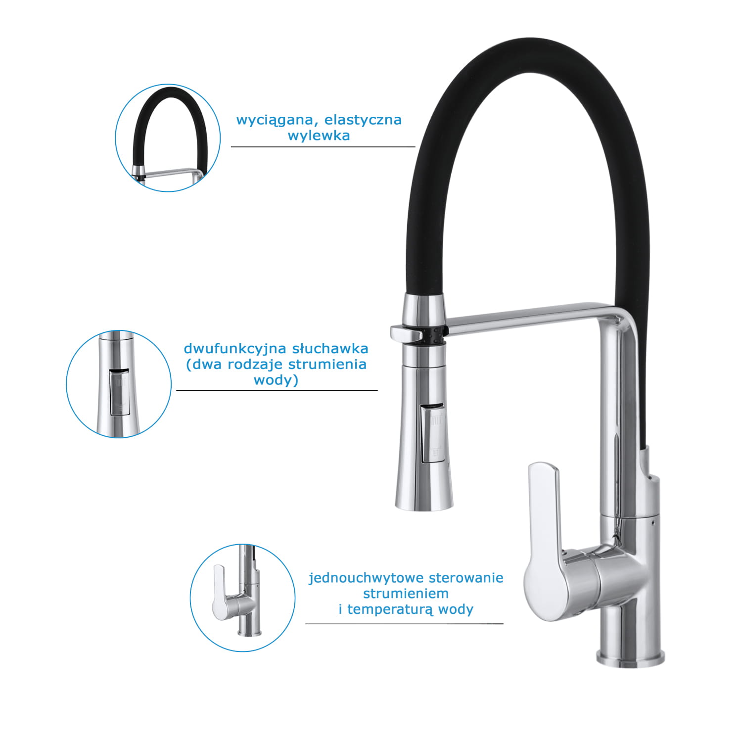 Vegas chrom bateria kuchenna wyciągana wylewka