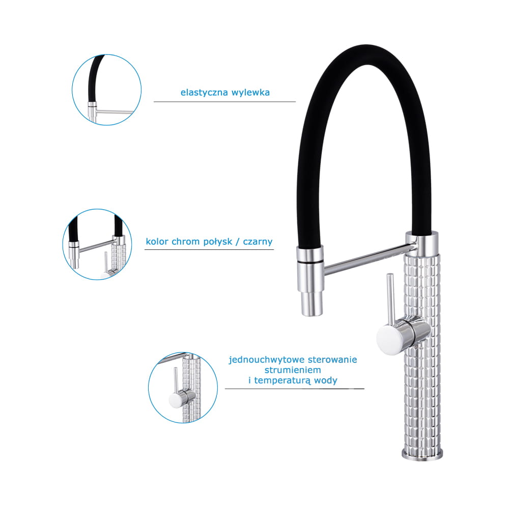 Bateria kuchenna z elastyczną wylewką chrom kran do zlewu nowoczesny SAMBA