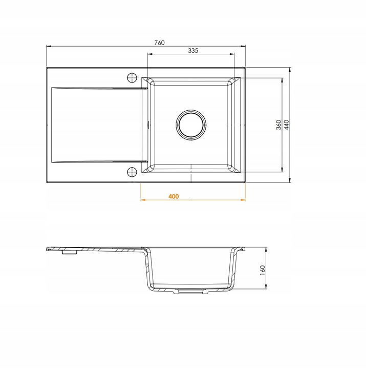 Zlewozmywak granitowy 1-komorowy z ociekaczem LUNA 76