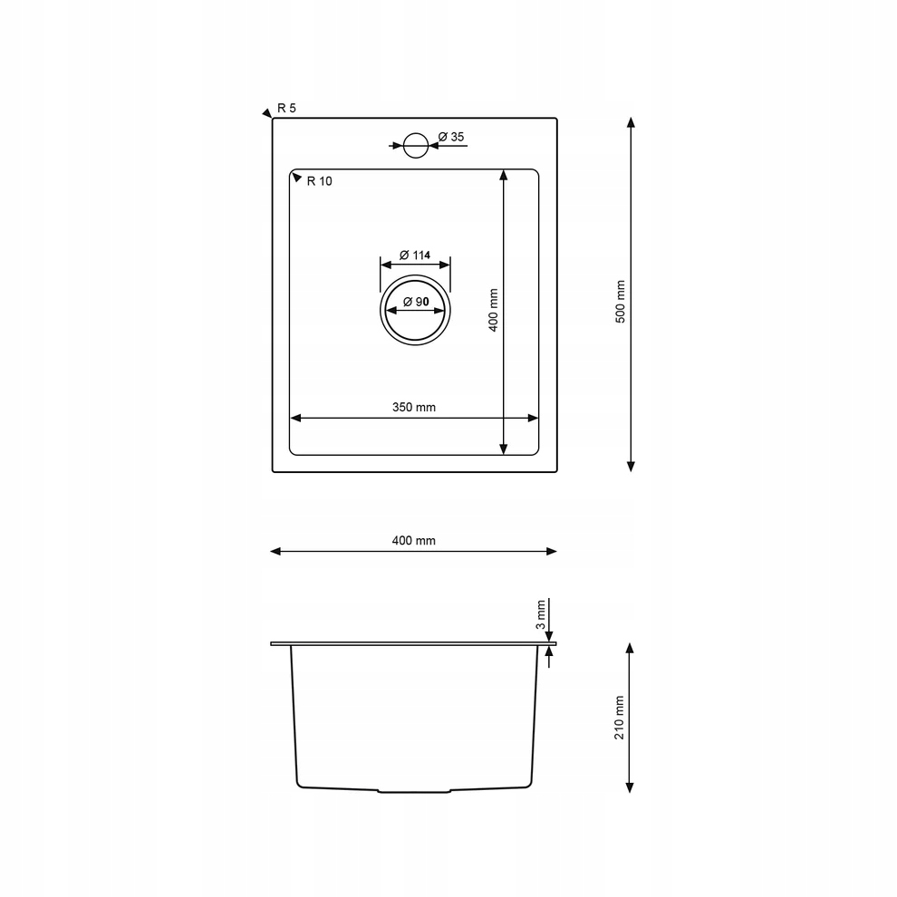 - Wymiar zlewozmywaka: 400 mm x 500 mm x 210 mm
