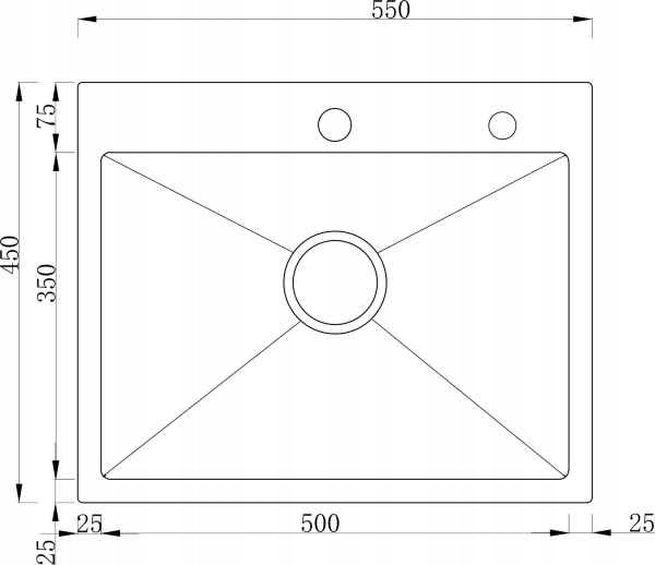 - Wymiar zlewozmywaka: 550 mm x 450 mm x 210 mm