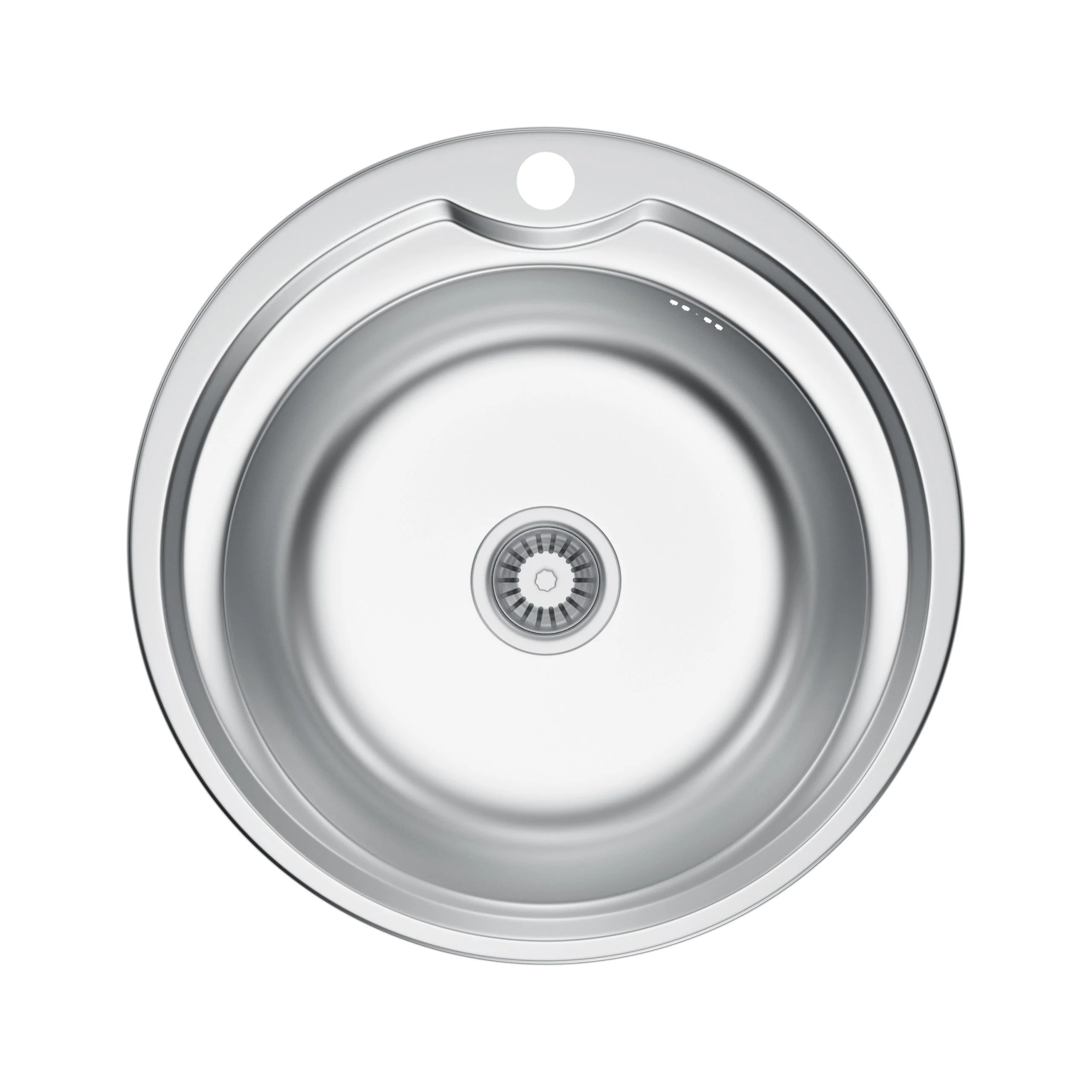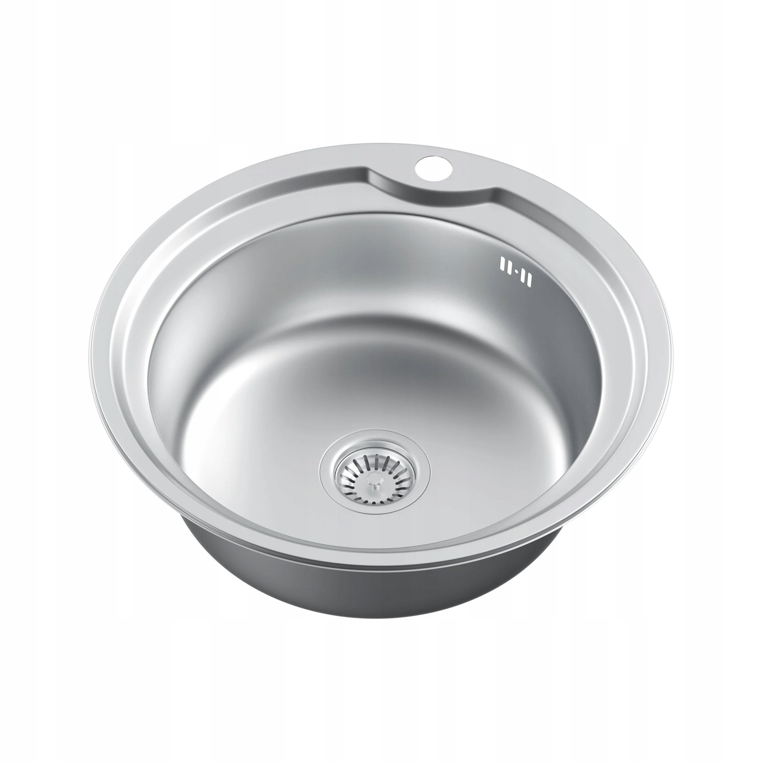 Zlewozmywak stalowy jednokomorowy okrągły PIA satyna inox 51 cm zestaw z syfonem