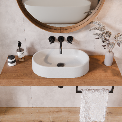 Stylowa umywalka nablatowa wykonana z trwałego konglomeratu granitowego. Odporna na zarysowania, wysokie temperatury i środki chemiczne. Idealna do nowoczesnych i klasycznych łazienek. Polski produkt wysokiej jakości.