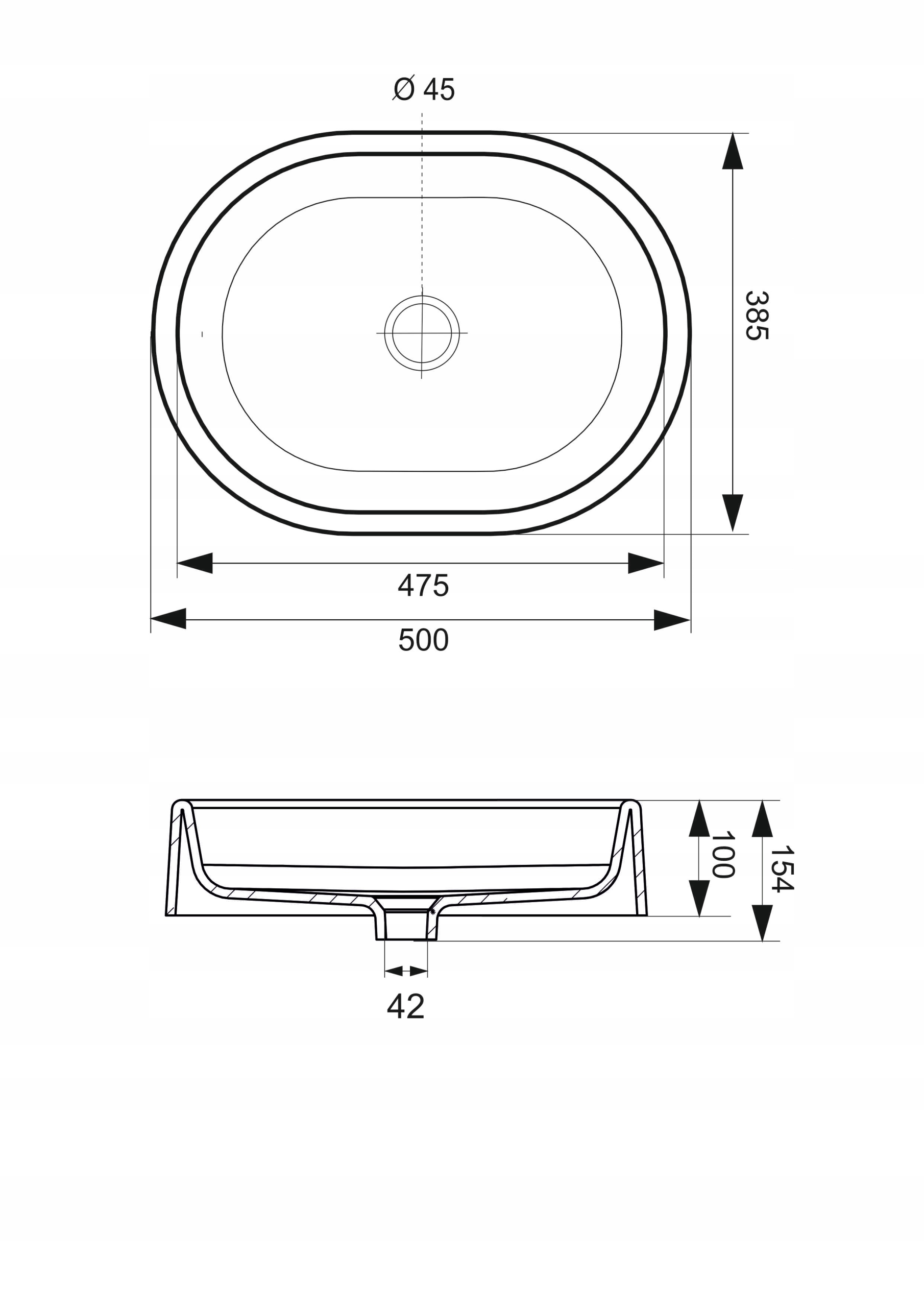 - Otwór odpływowy: 4,5 cm (standardowy otwór na korek umywalkowy typu click-clack)