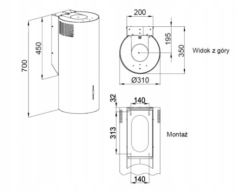 - Typ: okapu Przyścienny kominowy