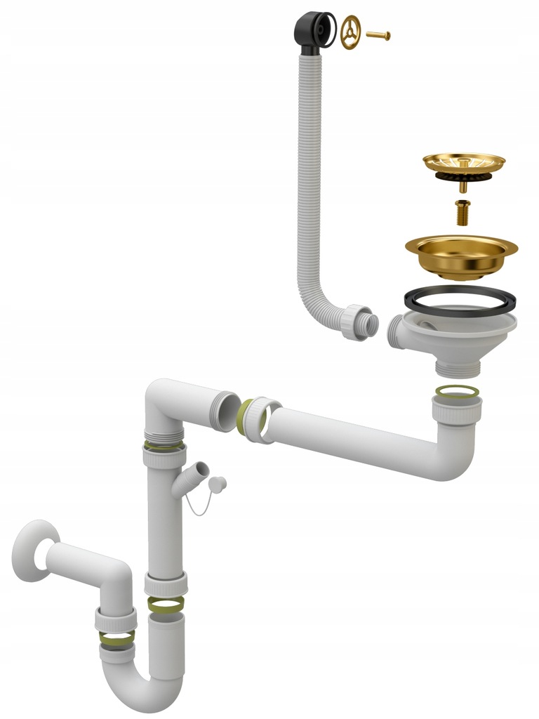 Wykonany z PCV i stali nierdzewnej, zapewnia trwałość oraz możliwość podłączenia zmywarki lub pralki.