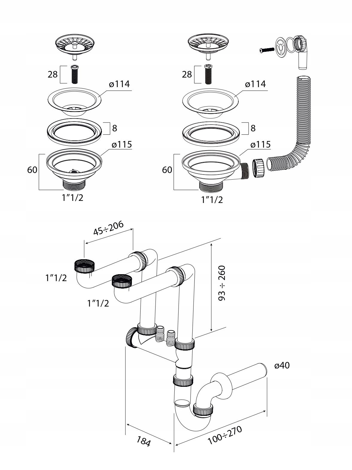 - Kompatybilność: zlewy 2-kom z okrągłym przelewem