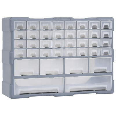 Ten organizer do przechowywania zawiera 32 małe, 4 średnie i 2 duże szuflady, aby zaspokoić różne potrzeby. Dzięki niemu Twoje narzędzia ręczne i akcesoria, takie jak złączki, są uporządkowane i dostępne. Szafka narzędziowa wykonana jest z odpornego na uderzenia tworzywa sztucznego, które jest trwałe i stabilne. Szuflady z przezroczystego plastiku pozwalają szybko zidentyfikować zawartość. Organizer jest idealny do przechowywania nakrętek, śrub, wkrętów, gwoździ, mocowań i komponentów.