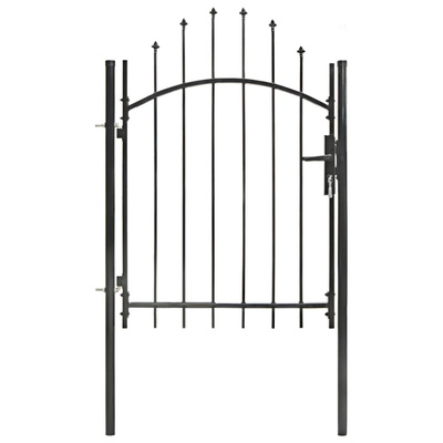 Dzięki eleganckiej konstrukcji w kształcie łuku, a także mocnym, poziomym prętom wzmacniającym ramę, nasza furtka zapewni wysoki stopień bezpieczeństwa, tworząc wspaniałe wejście na Twoją posesję. Wykonana z mocnej stali i malowana proszkowo brama jest odporna na rdzę i korozję. Wyposażono ją w zamek i jest dostarczana z 2 słupkami z zawiasami, co ułatwia jej montaż.