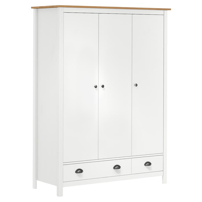 Szafa 3-drzwiowa Hill, biała, 127x50x170 cm, lita sosna