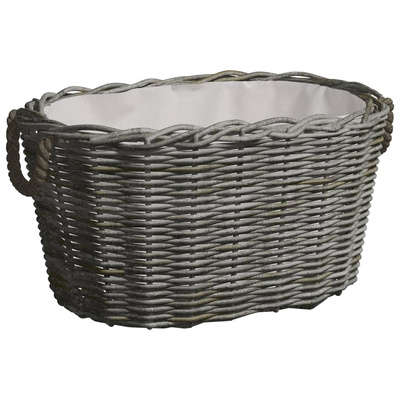 Kosz na drewno, z uchwytami, 59x42x28 cm, szara wiklina