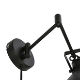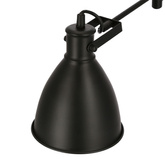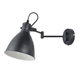 Efektowny kinkiet z metalowym kloszem (czarnym na zewnątrz, białym wewnątrz) na ruchomym ramieniu.