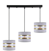 PANDY lampa wisząca czarny 3x40W E27 abażur szary+złoty